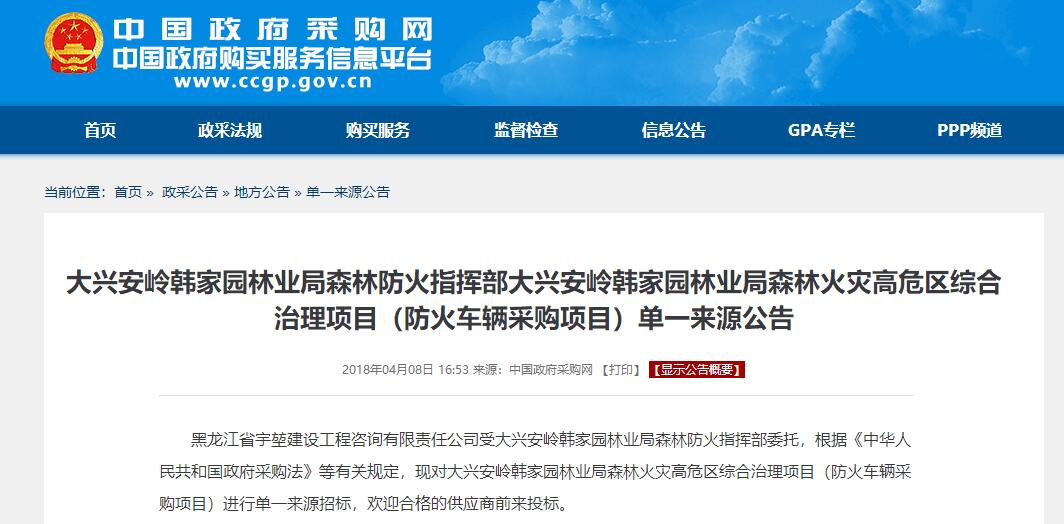 據林業(yè)局領導介紹,該批車輛到達林業(yè)局后下發(fā)至林業(yè)局防火辦,主要用于森林滅火人員物資輸送,后勤保障救援,防火器材運輸等主要工作,因此對車輛的質量要求極其嚴格,對我們公司提供的防火車輛給出高度評價,此批車輛為韓家園林業(yè)局經過層層篩選,反復招投標后才確定的車型,公司接到中標通知書時也是很激動,能接上這樣的森林防火設備運輸車,也對我們的服務,質量提出更高的要求。該局領導介紹由于林區(qū)防火公路多為簡易道路,對車輛通過性要求很高,我公司提供的四驅越野卡車能夠滿足他們的需求。下圖為招標公示。
