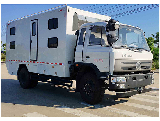 三、東風(fēng)四驅(qū)越野宿營車, 4驅(qū)越野宿營車用途:適用公安、特警、公安、邊防、衛(wèi)生、交通、礦山、地質(zhì)、軍隊等部門]長期野外作業(yè)、勘察、救援、搶險、救災(zāi)等宿營用,箱體空間利用大化。內(nèi)部配置:配備前儲物柜、后儲物柜、液晶電視機應(yīng)急燈、頂燈、頂置空調(diào)、床墊、被褥等。選裝配備8組豪華折疊臥鋪、未鋪上下梯、安全保險帶、電源插口等,細(xì)節(jié)精致。外置燃油加熱器、頂護欄、前爬梯、隱藏抽拉梯、專用房車門、專用玻璃滑窗、警示燈等。