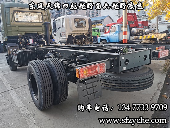國六排放東風(fēng)天錦四驅(qū)越野底盤正式下線了,東風(fēng)天錦4*4驅(qū)動國六越野卡車底盤采用:東風(fēng)天錦D530一排半駕駛室,4×4驅(qū)動,康明斯B6.2NS6B210國六發(fā)動機(jī)210馬力,韶齒六檔變速箱,東風(fēng)商用車橋,前驅(qū)動橋3.8噸,后橋10噸,10.00R20輪胎,軸距4500mm/4700mm,電動玻璃,方向助力,斷氣剎,ABS,大燈自動調(diào)節(jié),自動調(diào)整臂,選裝原廠空調(diào)。