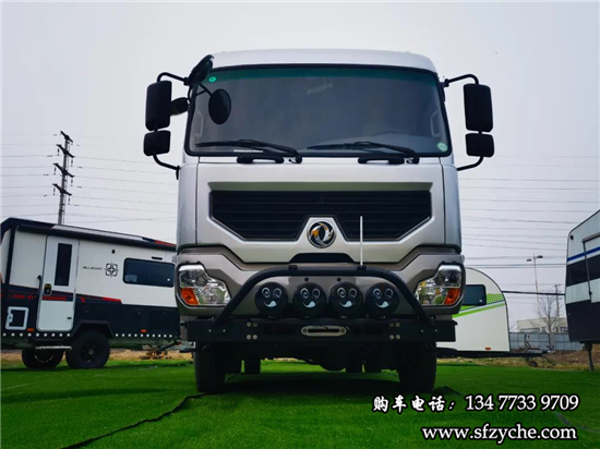 車(chē)輛前方安裝有保險(xiǎn)杠和四枚越野探照燈,下方還可加裝絞盤(pán),驅(qū)動(dòng)形式為分時(shí)四驅(qū)。在動(dòng)力上,這款房車(chē)搭載國(guó)六排放濰柴4.088L柴油增壓發(fā)動(dòng)機(jī),匹配法士特6擋手動(dòng)變速箱,最大功率125kW,峰值扭矩600N·m,動(dòng)力上沒(méi)有太大的問(wèn)題,由于是采用四驅(qū)卡車(chē)底盤(pán),可能舒適性上要大打折扣了。