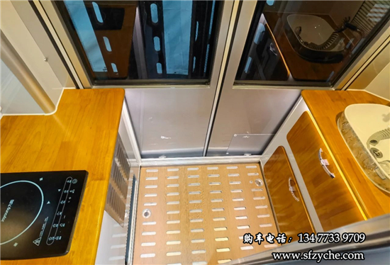 車(chē)輛尾部是獨(dú)立的廚衛(wèi)區(qū)域,可以通過(guò)移門(mén)跟生活區(qū)隔開(kāi),最大限度的降低油煙干擾和保證衛(wèi)浴間的隱私。后對(duì)開(kāi)門(mén)設(shè)計(jì),車(chē)內(nèi)布局還可以根據(jù)自己的喜好,個(gè)性化定制。