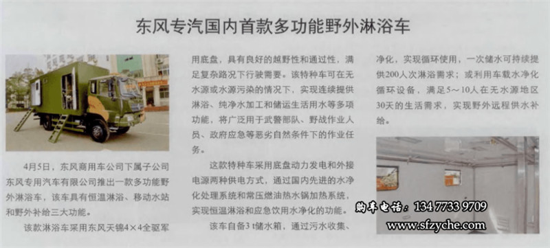 首頁 > 新聞中心 > 技術(shù)文獻 > 東風(fēng)專汽推出國內(nèi)首款東風(fēng)四驅(qū)多功能野外淋浴車