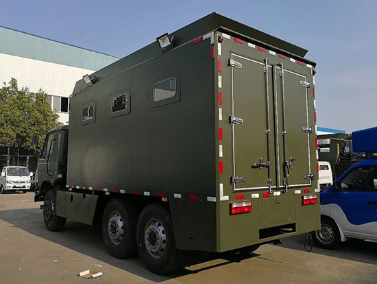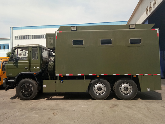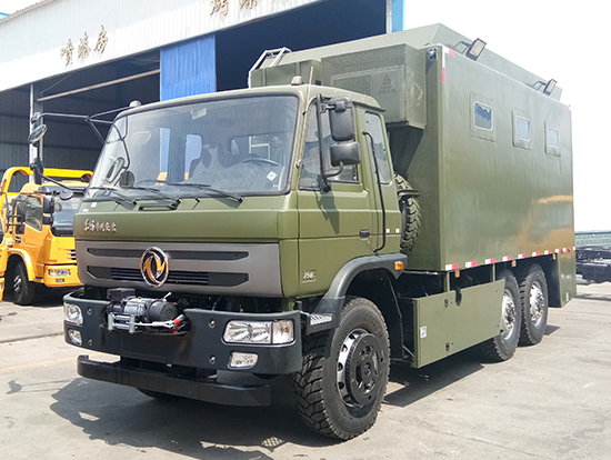 東風(fēng)國五六驅(qū)越野自行式炊事車_東風(fēng)軍用六驅(qū)炊事車_六驅(qū)野戰(zhàn)自行式餐廚車為部隊(duì)提供一種機(jī)動(dòng)、高效的專用現(xiàn)場(chǎng)飲食保障裝備,滿足部隊(duì)平時(shí)及野外值勤時(shí)的主副食的飲食保障工作,并解決部隊(duì)行進(jìn)中不停車做飯菜的需要及供應(yīng)飲用水的需求。六驅(qū)自行炊事車功能簡(jiǎn)介:該裝備主要編配于部隊(duì),為部隊(duì)官兵野外作業(yè)時(shí)提供良好的飲食保障:具有制作食品、保溫食品和儲(chǔ)存食品的空間與功能、并具有提供開水和餐具消毒的功能。