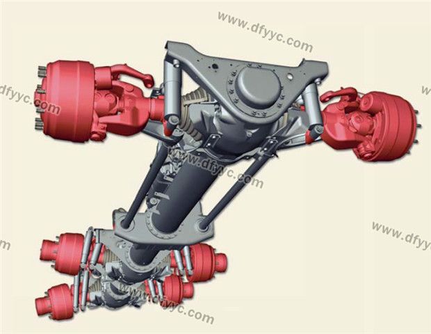 斷開(kāi)式車(chē)橋是太脫拉另一與眾不同之處,這幫助太脫拉這樣的重型卡車(chē)實(shí)現(xiàn)了全輪獨(dú)立懸架,允許車(chē)輪有較大的跳動(dòng)空間,大大提高了整車(chē)在極端路況下的通過(guò)能力,尤其是通過(guò)臺(tái)階、壕溝、扭曲路的能力。太脫拉在空載的時(shí)候車(chē)輪是呈內(nèi)八字的大外傾角姿態(tài),行駛的時(shí)候只有輪胎的外側(cè)胎肩接觸地面,而滿(mǎn)載的時(shí)候卻是呈負(fù)外傾的姿態(tài),這因?yàn)槠鋽嚅_(kāi)式車(chē)橋?qū)嶋H上是單橫擺臂的結(jié)構(gòu)所造成的,只要使用特制的輪胎,其輪胎磨損情況可以有效的改善。